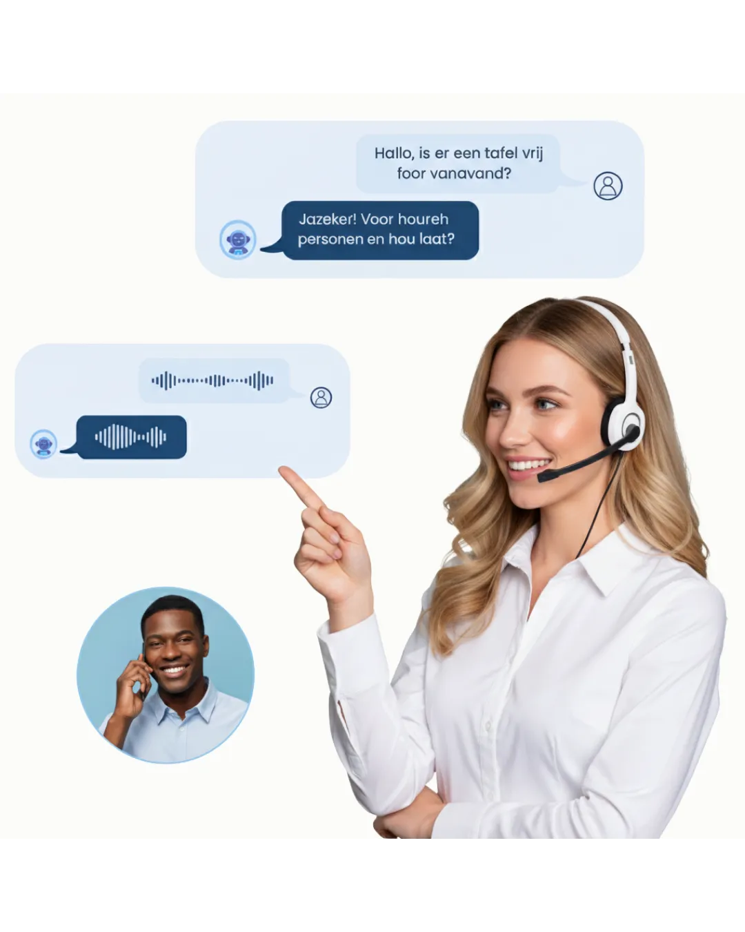 Luna is een geavanceerde AI-assistent, geen echt persoon. Ze is speciaal ontwikkeld om gesprekken te voeren en taken uit te voeren met een zeer menselijke, natuurlijke stem. Het doel van Luna is om je te ontlasten van routinetaken, zodat jij je kunt richten op wat echt belangrijk is.